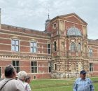 Aus dem unklaren Gebilde im Balken machte Pagenstecher ein Seerosenblatt, um auf die Tatsache anzuspielen, dass die Alsdorfer Burg eine Wasserburg war, wie der teilweise erhaltene Wassergarten noch heute sichtbar macht.