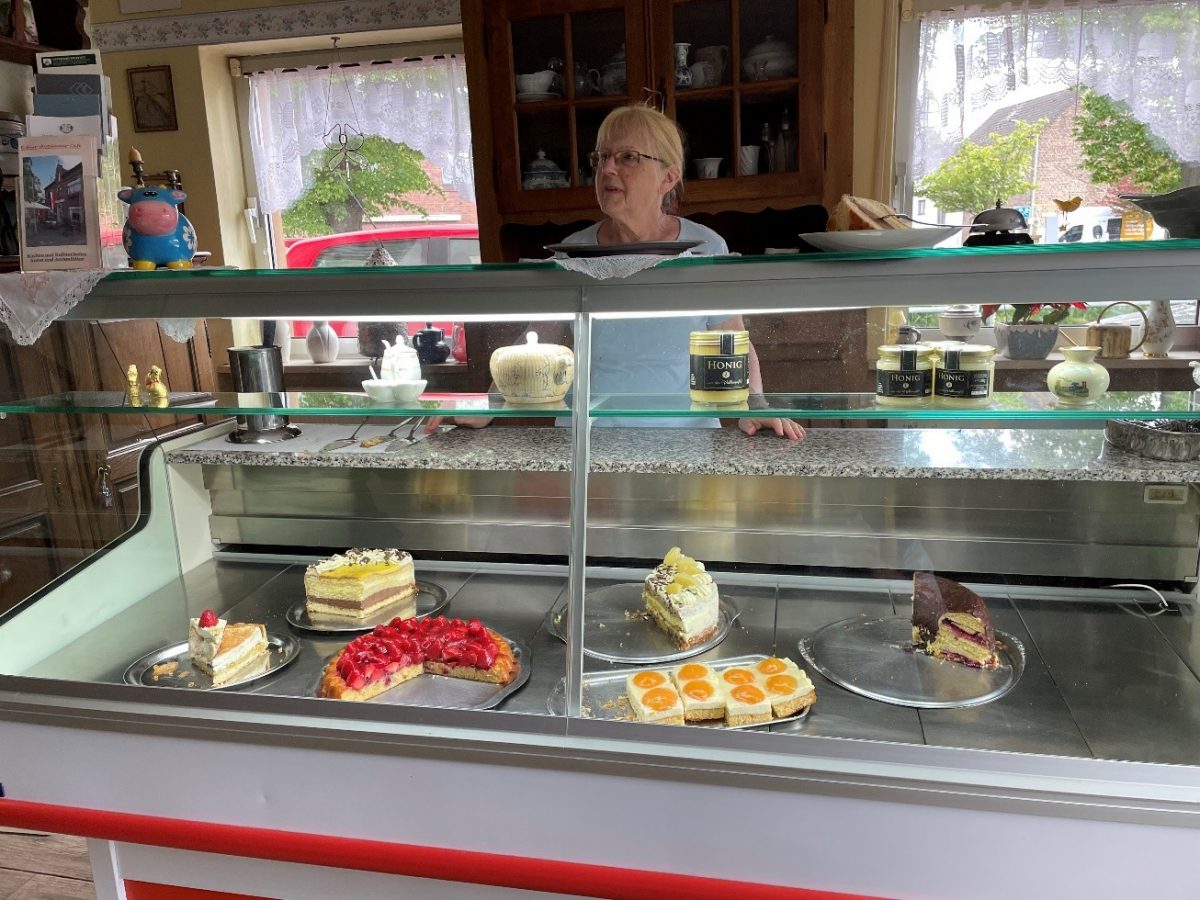 Es war schon später Nachmittag, als die Exkursion ausklang. Armin Meißner hatte nicht zuviel versprochen, die Torte des Eifel Anikhaus Café war excellent, und zwar so excellent und überzeugend, dass einige Teilnehmer noch ein Stück Kuchen für den Sonntag mitnahmen.